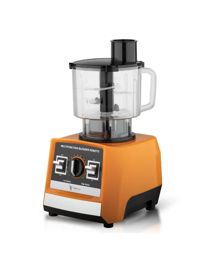 يجمع هذا الجهاز بين الخلاط، والمطحنة، والمفرمة لتغطية جميع احتياجاتك اليومية في تحضير العصائر والطحن والفرم بسهولة تامة.