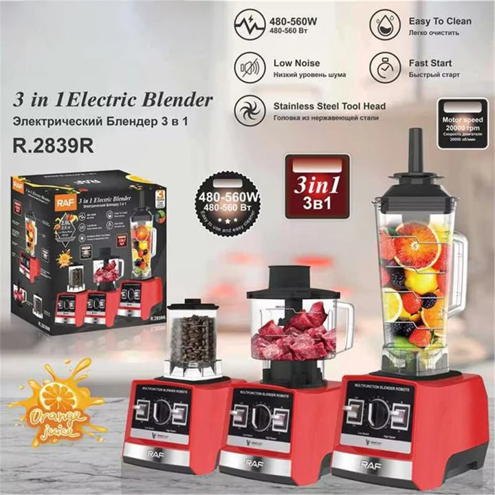 Get all-in-one performance in your kitchen with the RAF Electric Blender, Model R.2839, featuring 3-in-1 multi-function design.