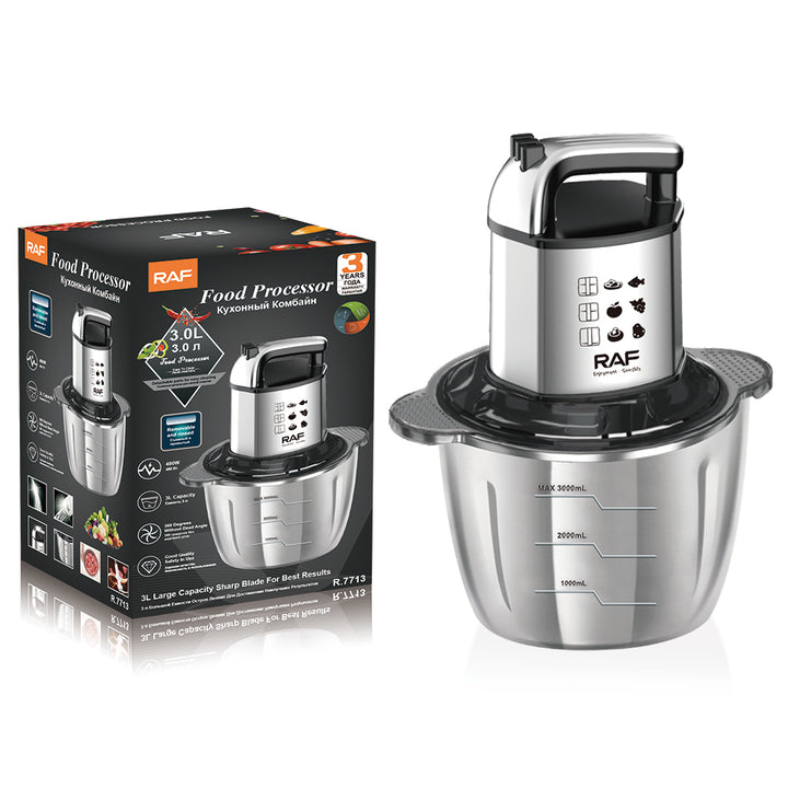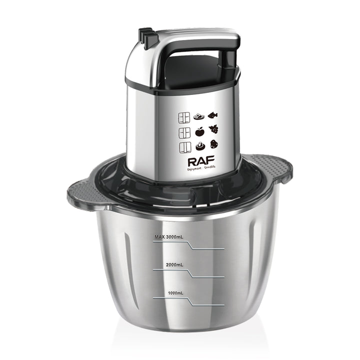Prepare your food quickly and easily with the RAF R.7713 Electric Chopper, featuring 480W power for efficient chopping of vegetables, onions, garlic, and nuts.