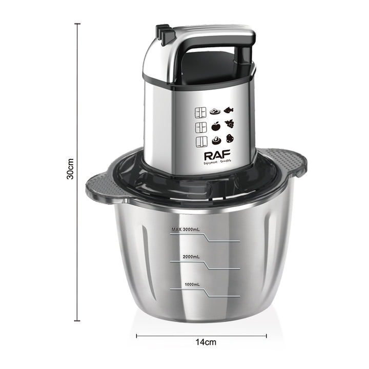 استمتعي بسهولة وسرعة في تحضير الطعام مع المفرمة الكهربائية RAF R.7713 بقدرة 480 وات، لتمنحك أداءً فعالًا في فرم المكونات المختلفة مثل الخضروات، البصل، الثوم، والمكسرات.