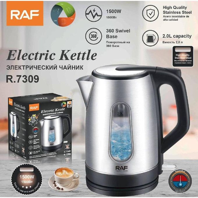 مشروبك الساخن في أي وقت مع ماكينة غلاية كهربائية RAF R.7309 مصنوعة من الفولاذ المقاوم للصدأ بسعة 2 لتر وقوة 1500 وات . العديد من هذه الغلاية بين الاختيار حيث يمكنك العمل لمنحك تجربة غلي سريعة ويمكن استخدامها بشكل يومي.