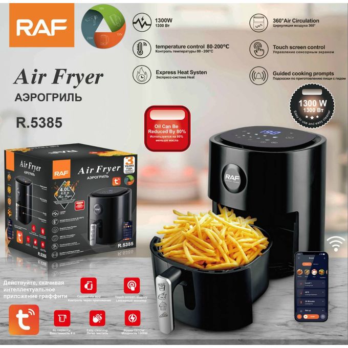 مقلاة RAF الرقمية الخالية من الزيت مع تطبيق جوال، 1300 واط، 4 لتر، أسود، موديل R.5385