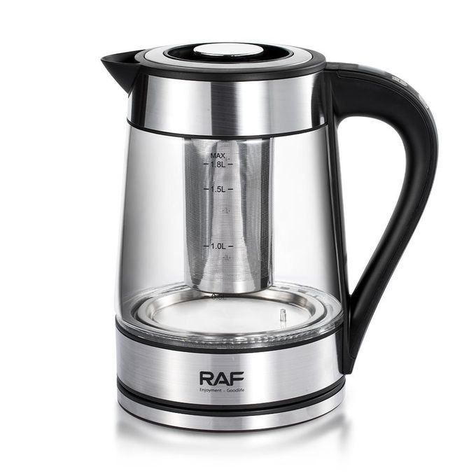 استمتع بغلي سريع وفعال مع غلاية RAF الكهربائية الزجاجية المزودة بمؤقت ذكي. بقوة 2200 واط وسعة 1.8 لتر، مثالية للاستخدام اليومي في المنزل أو المكتب. تصميمها الزجاجي الشفاف يسمح بسهولة المراقبة مع ضمان المتانة والسلامة.