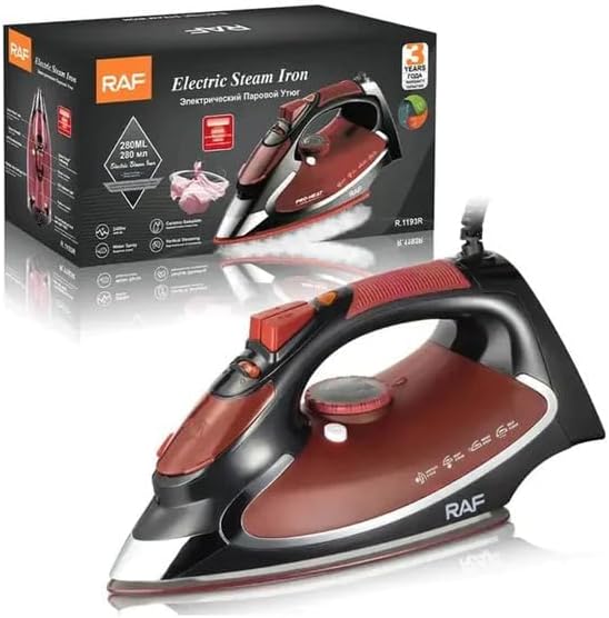 مكواة بخار كهربائية من راف، 2400 واط، لون أحمر، موديل R.1193R