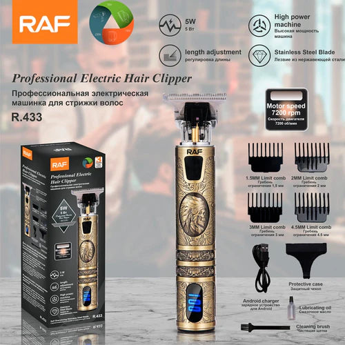 ماكينة قص الشعر RAF، 5 وات، قابلة لإعادة الشحن، ذهبي، موديل R.433