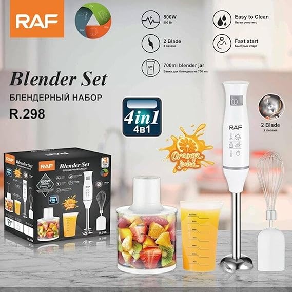 خلاط يدوي راف 4 في 1، 800 واط، أبيض، موديل R.298
