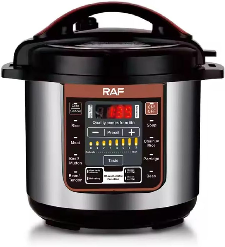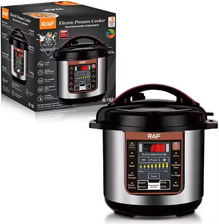 قم بطهي وجبات أسرع وأكثر صحة مع طنجرة الضغط متعددة الوظائف RAF R.182 المصنوعة من الفولاذ المقاوم للصدأ والتي تتميز بسعة كبيرة تبلغ 12 لترًا - مثالية للعائلات الكبيرة والتجمعات.