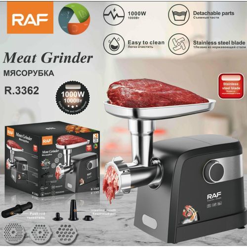 -  مفرمة لحم كهربائية RAF متعددة الاستخدامات بقدرة 1000 وات ، توفر لك سهولة موثوقة وسهلة الاستخدام لتحضير اللحوم المتنوعة في المنزل.
