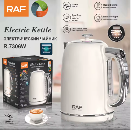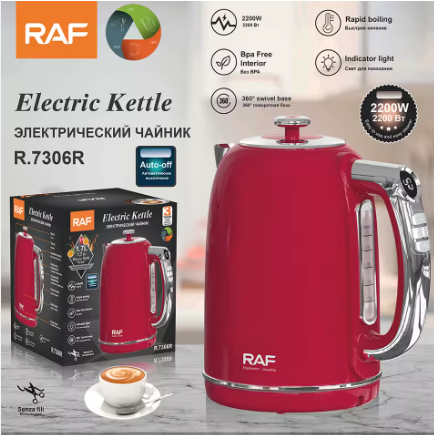 استمتع بغلي الماء بشكل سريع وآمن ومريح مع غلاية RAF R.7306 الكهربائية ، وهي مثالية للمطابخ المنزلية أو المكاتب.