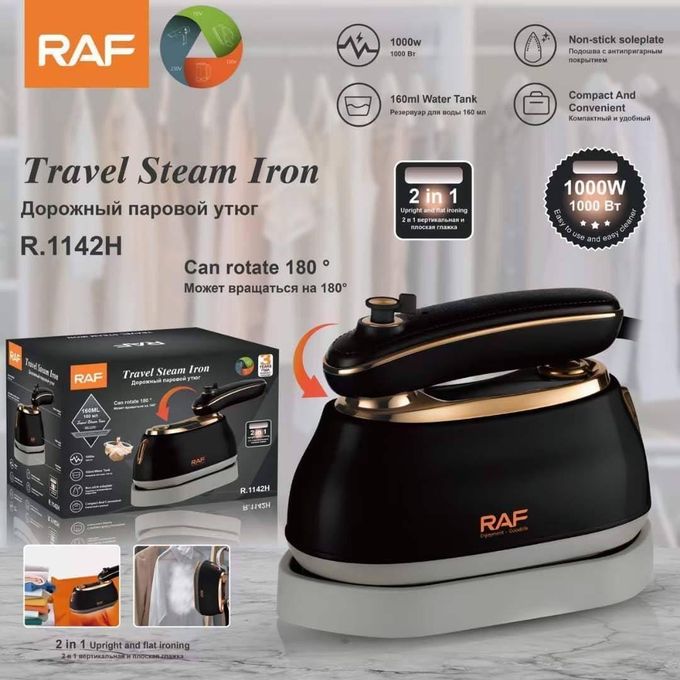 مكواة بخار للسفر من راف، لون أسود، 1000 واط، موديل R.1142H